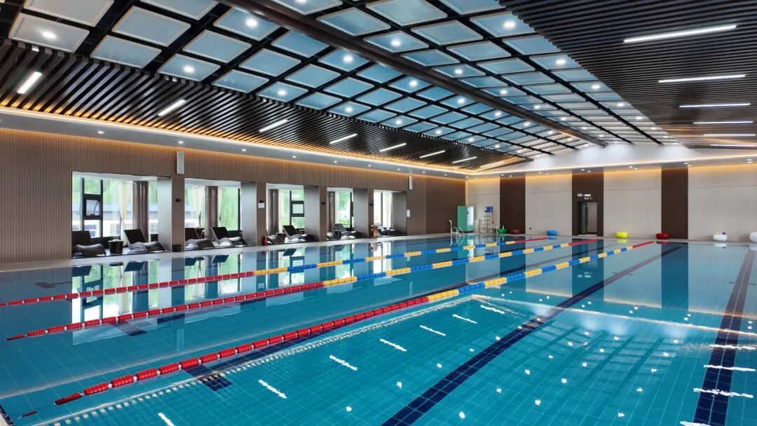 在游泳馆内逐碧波畅泳,沐古风而乐
