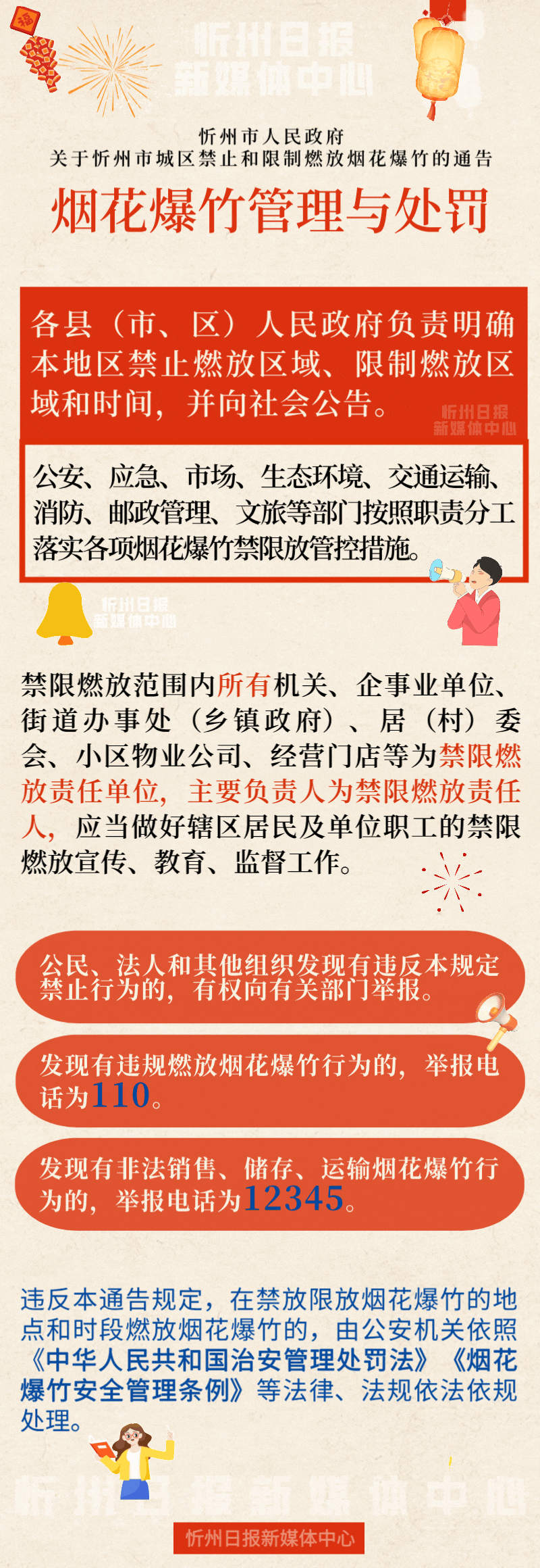 除上述规定通告中还明确规定烟花爆竹的管理与处罚如下↓↓↓