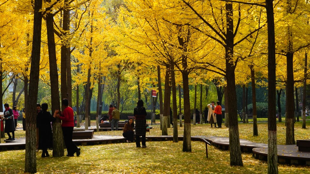 公园的银杏道、草坪上