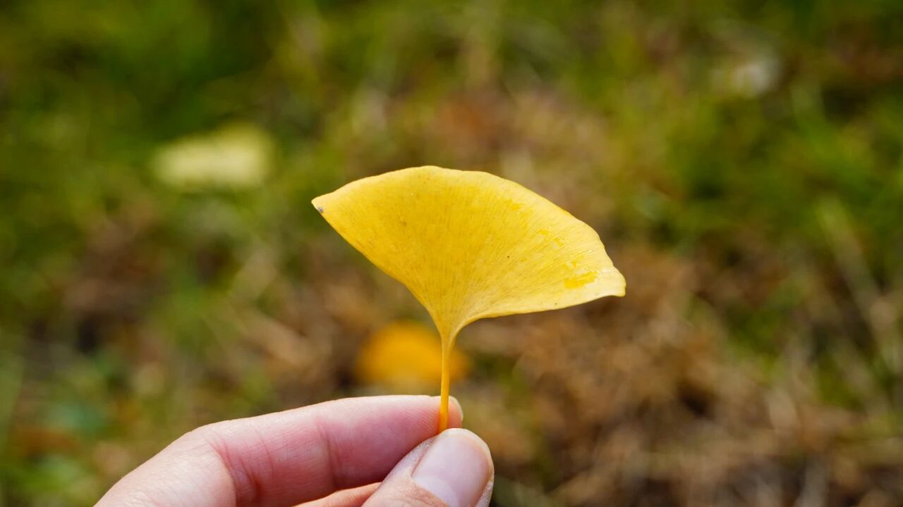 顺手捡起一片银杏叶