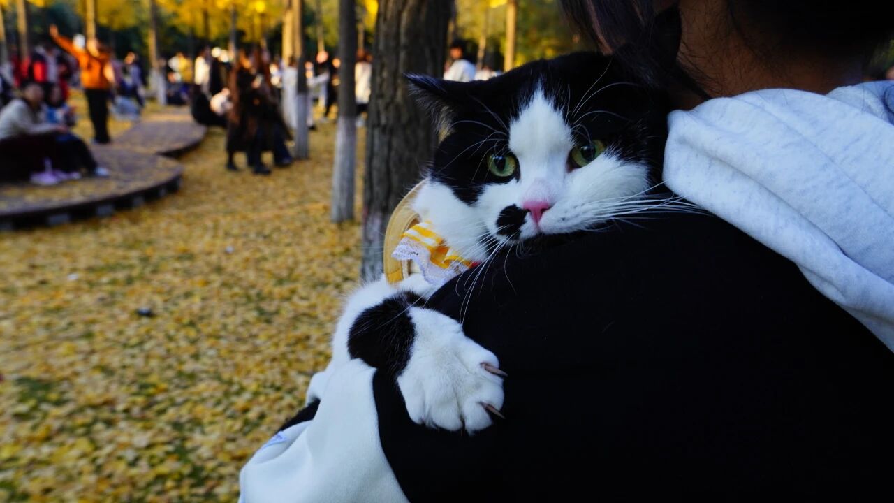 毛茸茸的小家伙与金黄的秋景相映
