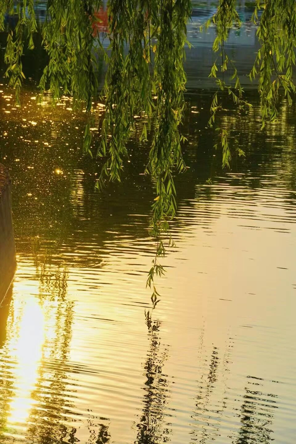 岸边的垂柳早已褪去盛夏的翠绿