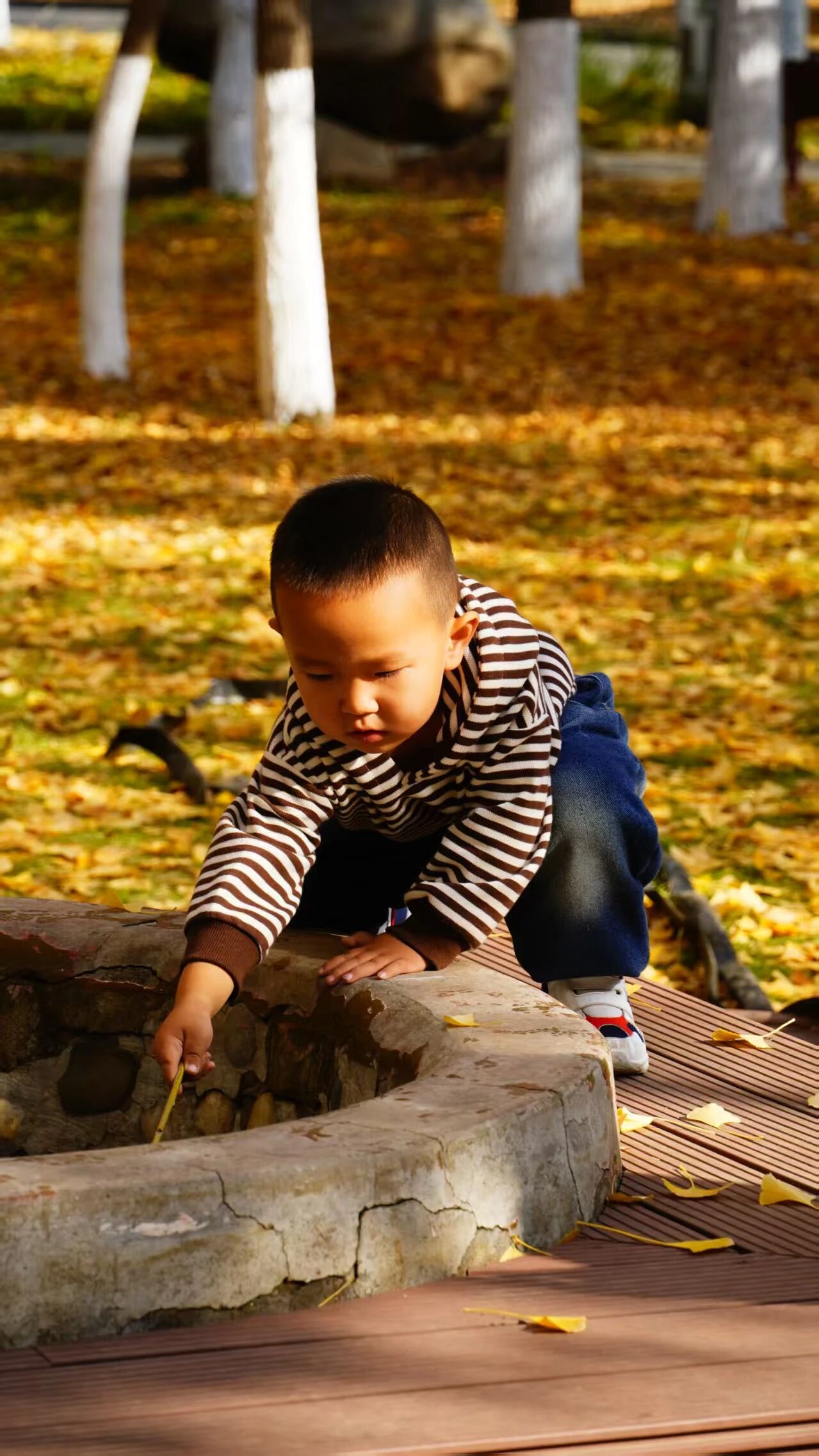 抓拍孩子捧起落叶轻轻扬起的瞬间